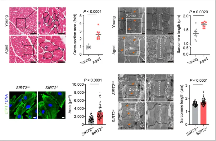 ▲SIRT2敲除的人心肌细胞表现出与老年猴心肌细胞类似的衰老表型(图片来源:参考资料[1])
