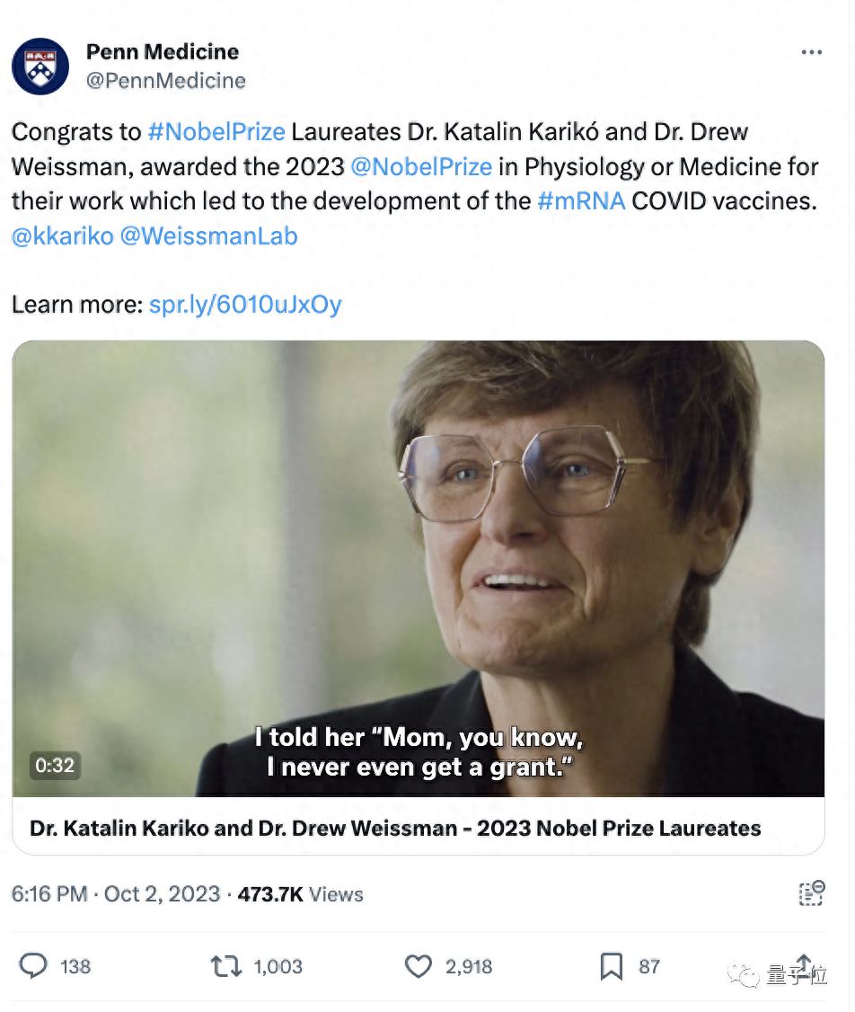 直到遇到魏斯曼教授,也就是今年另一位诺奖得主,她的研究才得以继续,以初级研究员的身份。