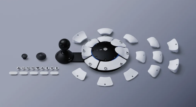 ·“Access 控制器”是一款专为残障玩家设计的PS5用控制器,整体造型看上去完全不同于传统手柄控制器,多个形状不同的按键分布一圈在 原型主底座上,旁边单独分出的摇杆尺寸更大。