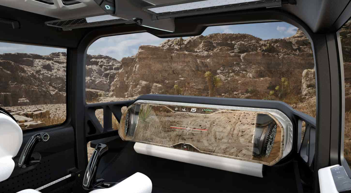 内饰方面,该车配备了带增强现实功能的超大屏幕。车内并没有方向盘,而是配备了类似挖掘机的双操纵杆。此外,该车还拥有多个的摄像头和传感器,能够在屏幕上显示车轮和底盘的实时图像。