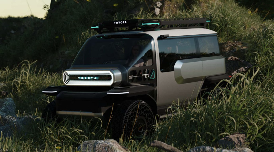车尾部分,该车的造型十分方正,除了尾门超大的“TOYOTA”标志外,几乎没有什么装饰。尾灯也采用了车头同款的设计。造型十分科幻。