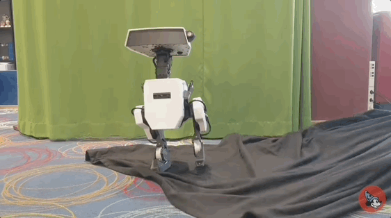 偷袭推它,或是故意拖拽它脚下的地毯,它都能应对自如: