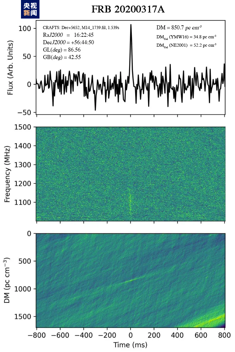 据中国科学院介绍,去年6月,中国科学院国家天文台研究员李菂领导的国际团队,通过中国天眼FAST的“多科学目标同时巡天(CRAFTS)”优先重大项目,发现了迄今为止唯一一例持续活跃的重复快速射电暴FRB 20190520B。