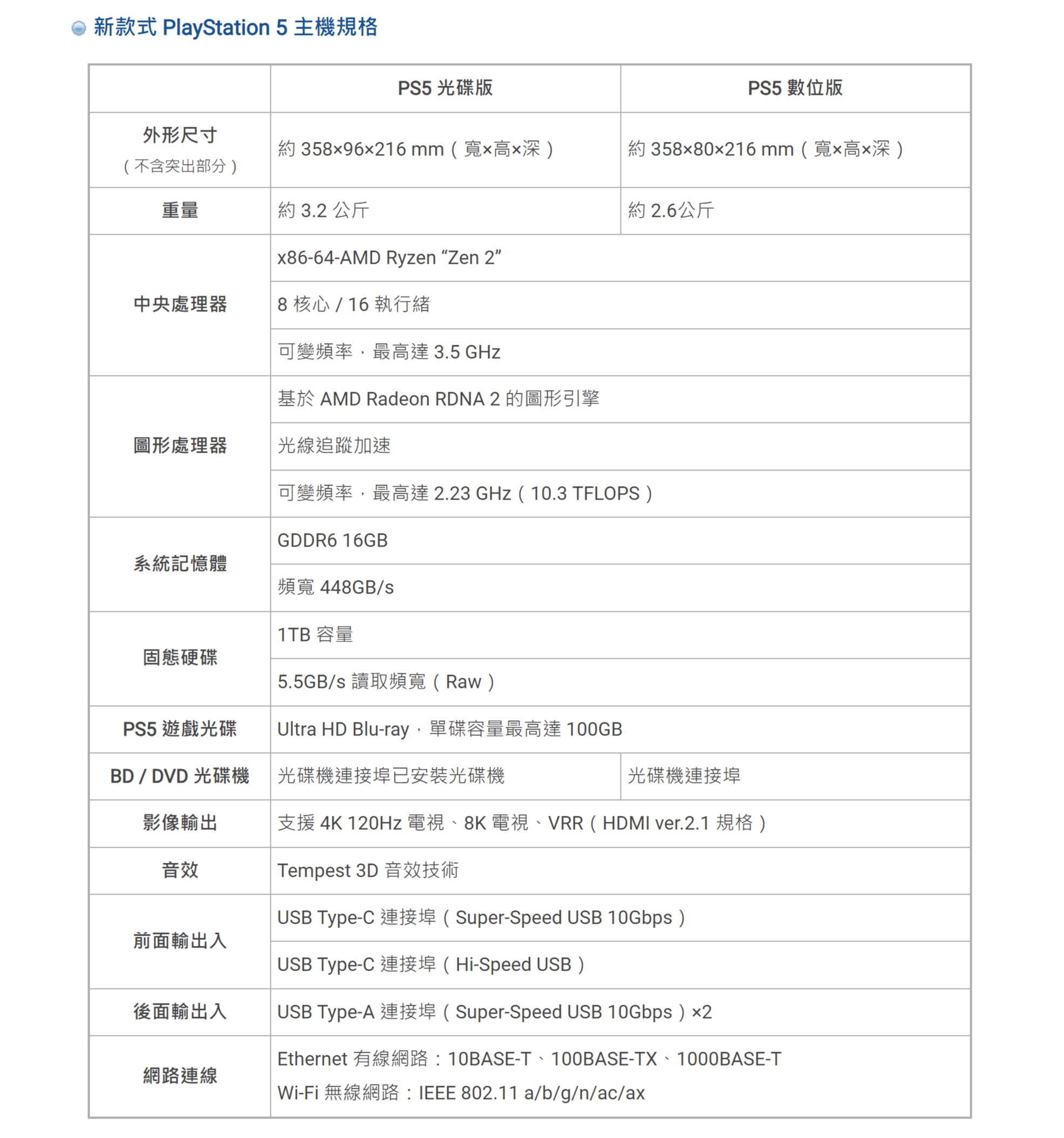 新款式PS5主机内部储存空间由既有的825GB扩充为1TB,提供更大的储存空间。此外,前方的USB连接埠则从现行的Type-A与Type-C各一组改为Type-C两组,不过其中一组仍维持USB 2.0的规格。