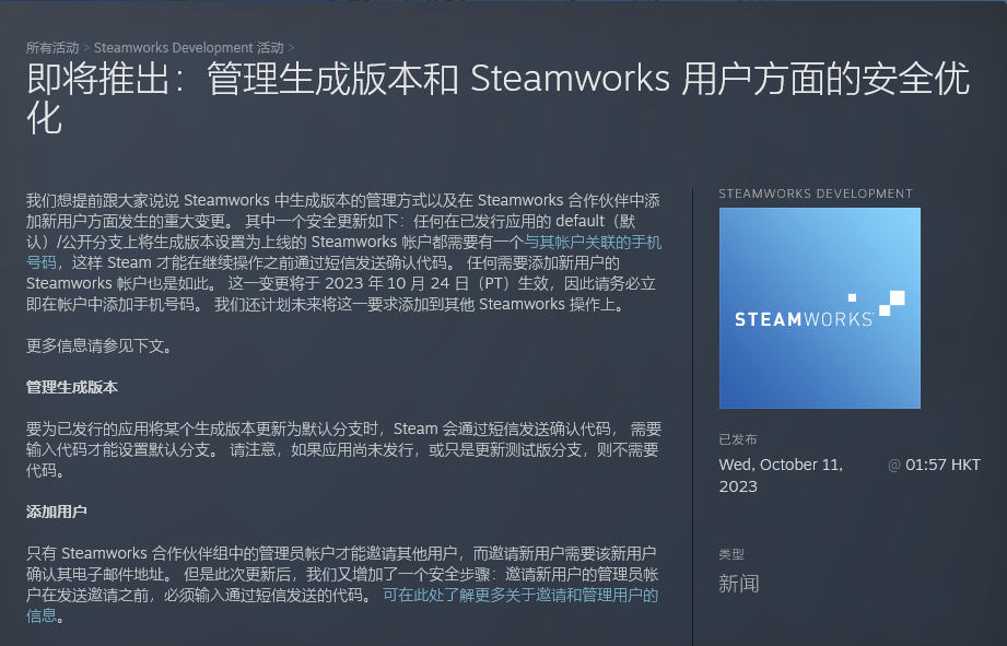 未来,Steam开发者在向公司组群添加新用户时也将需要进行短信双重验证。V社表示计划未来将在其他 Steam后端操作中也添加双重验证。
