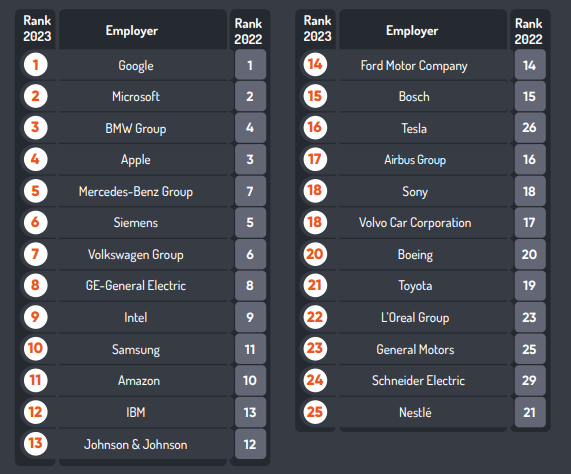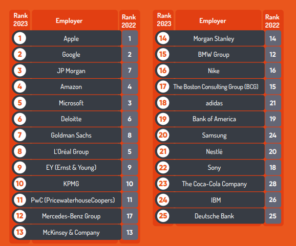 通过询问这些学生并深入了解他们认为最具吸引力的公司特征,以及谁才是他们最理想的雇主。最终得到了这份2023全球最具吸引力雇主的报告。