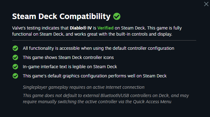 在《暗黑破坏神4》登陆 Steam 不到一周时间内,Valve 就已经让该作通过了旗下掌上电脑设备 Steam Deck 的验证,表示该作可以流畅在设备上游玩。
