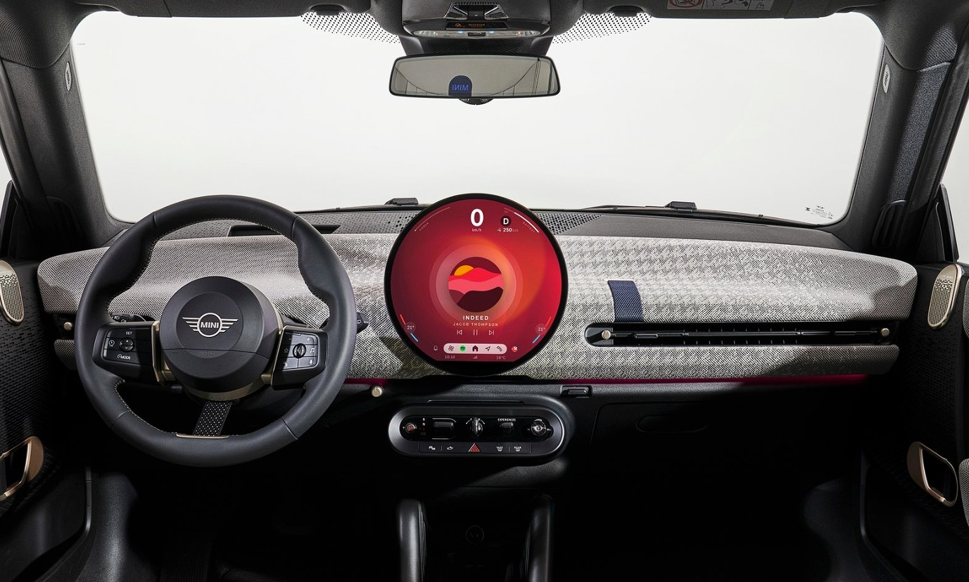 而与目前市面上大多数在售的车辆不同,新车用上了圆形中控屏,很明显,这是在沿用现款MINI方案的基础上,又做了进一步的改动。