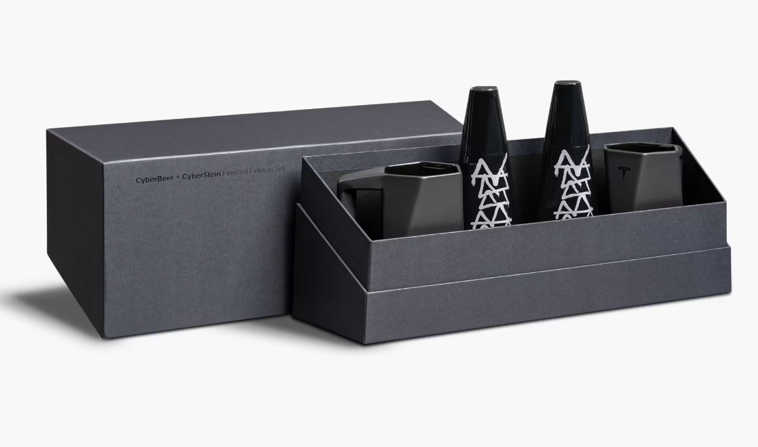 特斯拉除了卖车,还开了一家“杂货铺”,推出各种五花八门的周边产品。日前,特斯拉在美国市场推出CyberBeer+CyberStein限量套装,售价150美元(约合1095元人民币),套装包含两瓶特斯拉赛博啤酒和两个酒杯。