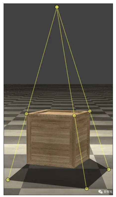 远处的盒子在图 1(b) 与地板上的瓷砖对齐,使得盒子的边缘与瓷砖之间的线平行。因为平行平面上的平行线共享一个消失点,所以盒子侧面和瓷砖地板的消失点是相同的;