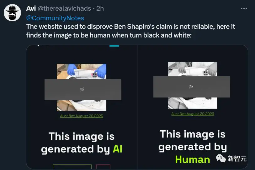 有人发现,只要把同一张图片裁剪一下,或者背景色变成黑白,这个检测器就会认为图片是由人类拍摄的。