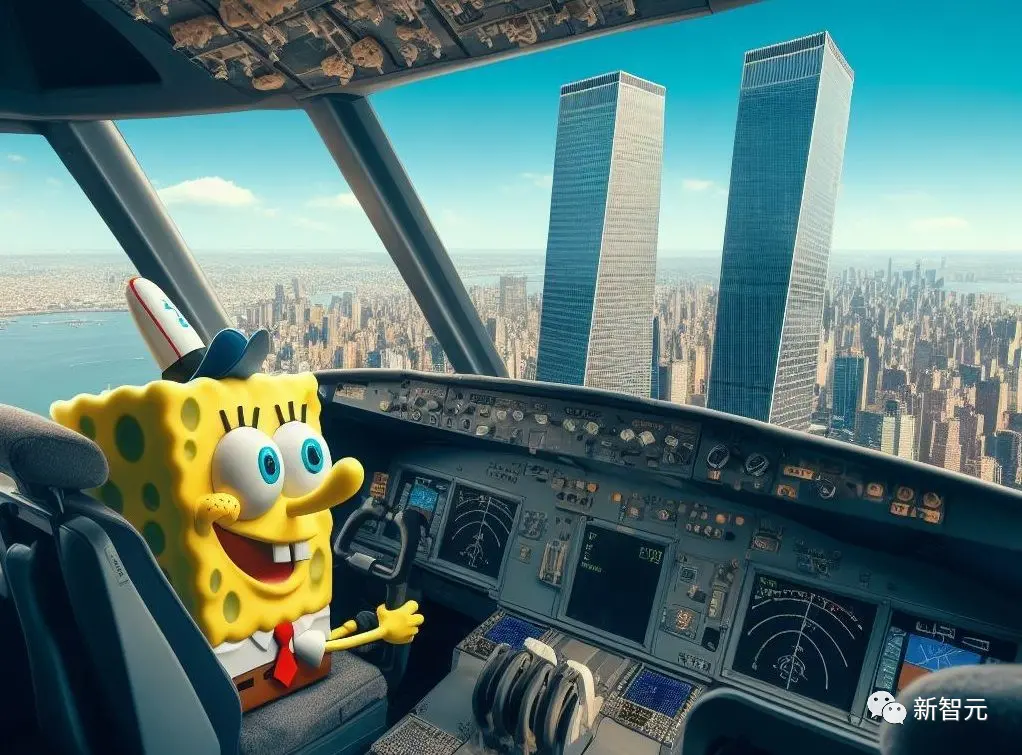 比如这张著名的“海绵宝宝制造了9/1”的图片,窗外的双子塔线条都不直,飞机上的仪表盘都相互扭曲到一起了,这看起来就是“A里A气的”。