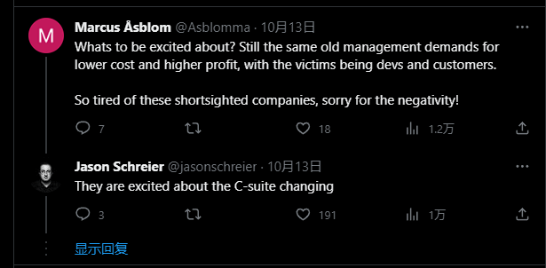 但是,有网友表现出消极态度并质疑:“兴奋点在哪呢?还是老一套,什么降本增效啊,提高利润啊,到头来还是消费者和开发者遭罪。我已经厌烦这种短视的公司了,请原谅我的失礼!”