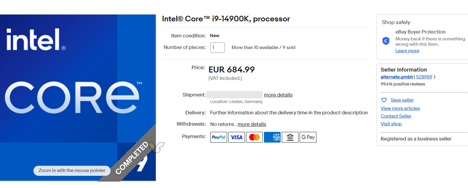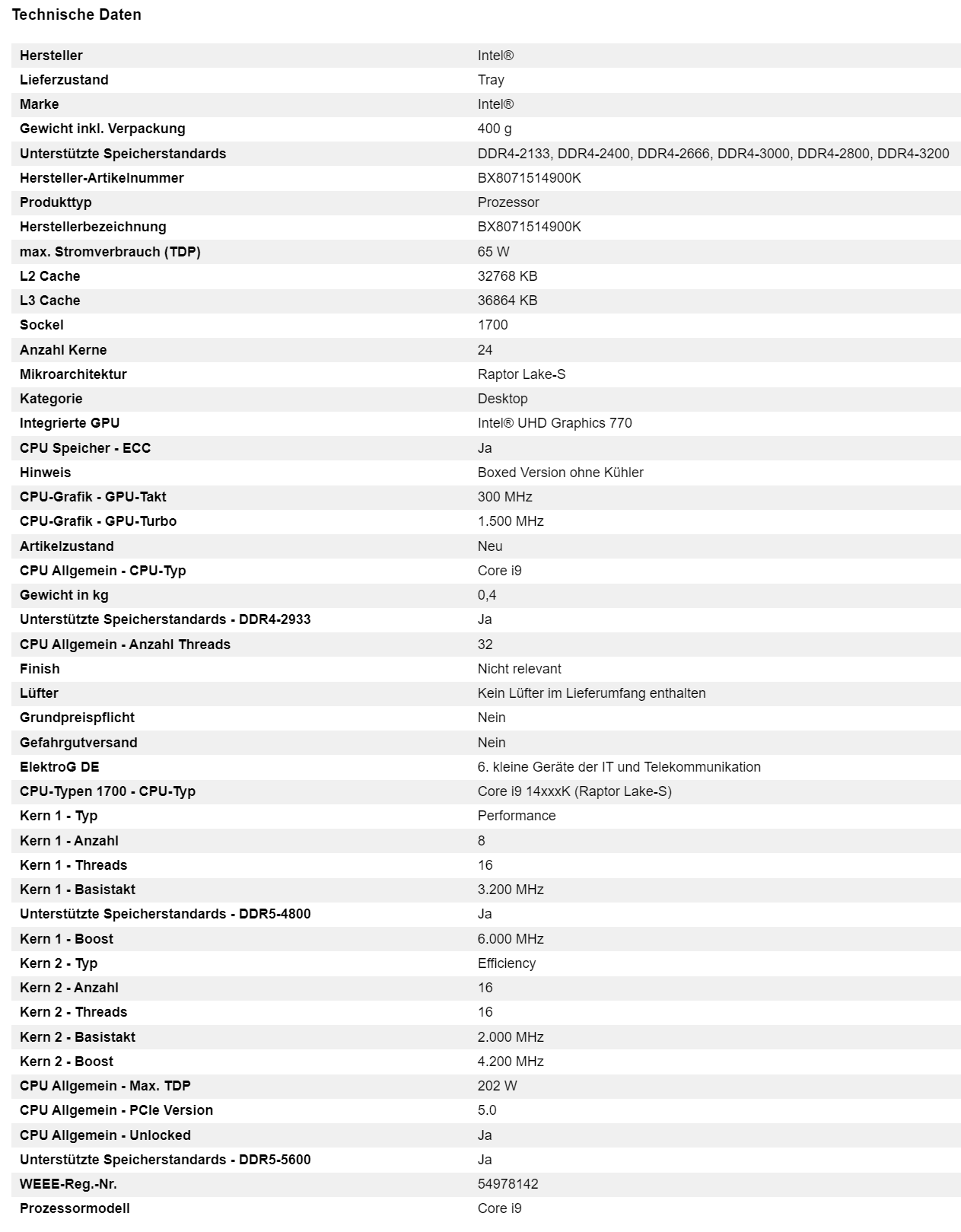 价格方面,Intel还未公布,各家零售商都挂出了不同的标价,普遍比较贵,Alternate i9-14900K就要685欧元,约合人民币5260元,比同一家店内的i9-13900K贵了大约21欧元。