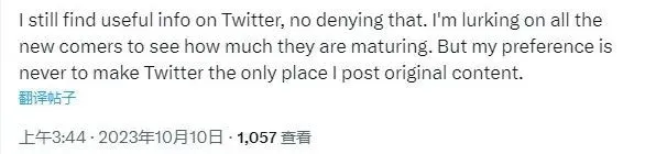 不可否认,我仍能在Twitter上找到有用的信息。我潜伏在所有新人身边,看看他们有多成熟。但我绝不会让Twitter成为我发布原创内容的唯一地方。