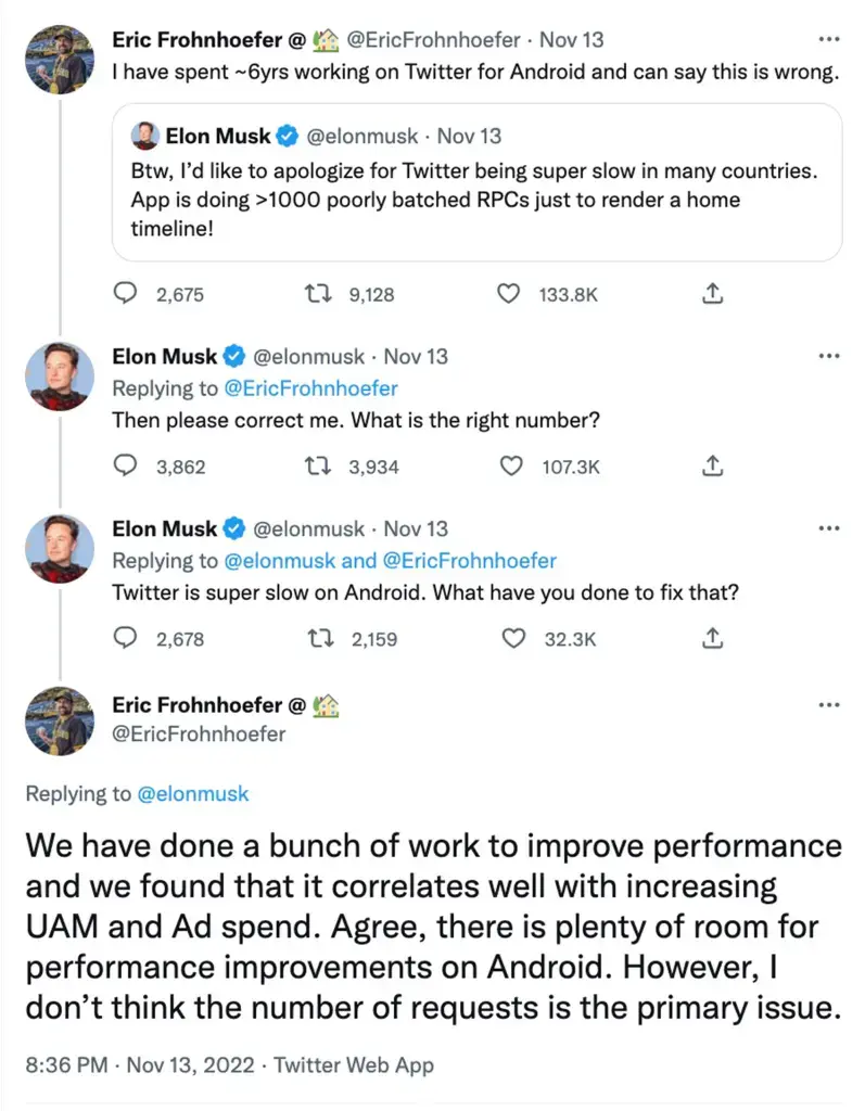 去年11月15日,马斯克在Twitter上向用户道歉,称twitter 在许多国家速度超慢是因为应用程序不佳。