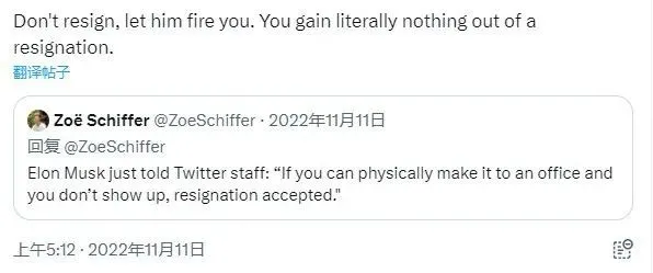 但华裔软件工程师Yue却没怂,直接头铁的在Twitter上明牌反抗:“别辞职,让他解雇你,辞职实际上什么也得不到。”。
