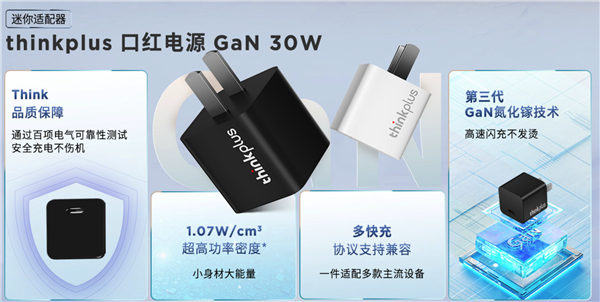 联想thinkplus口红电源GaN 30W售价仅69元,套装版(含1m线材)售价仅79元。