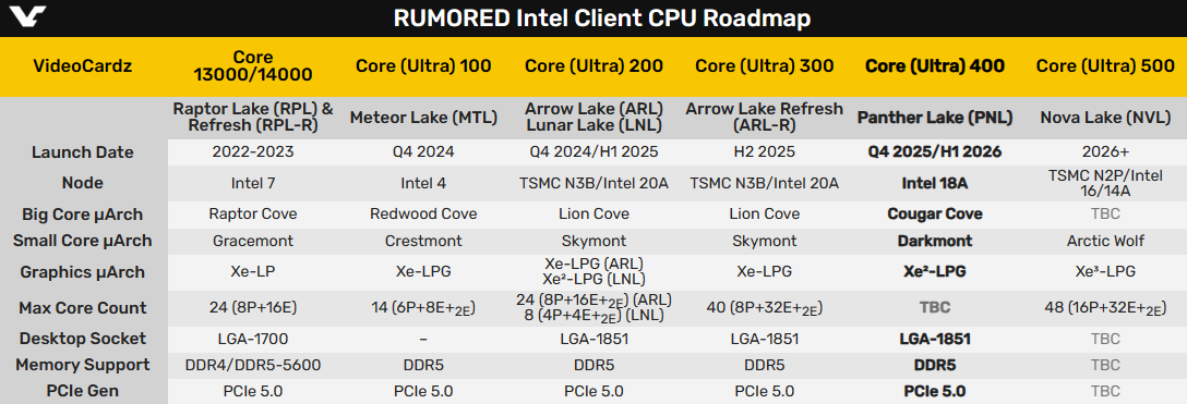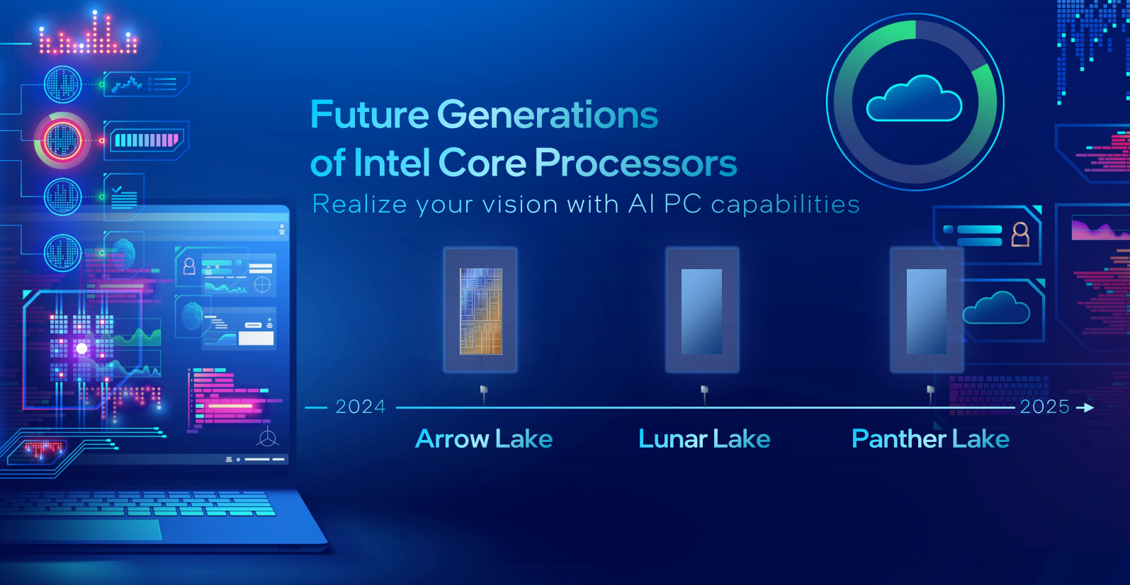 Panther Lake之前,Intel还有三代产品Meteor Lake、Arrow Lake、Lunar Lake。