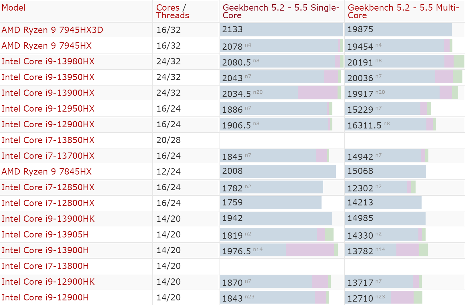 GeekBench 5.4单核跑分1773-1849不等,已经比较接近Intel、AMD现有的顶级HX系列,多核跑分9787-9832,差距就比较大了。