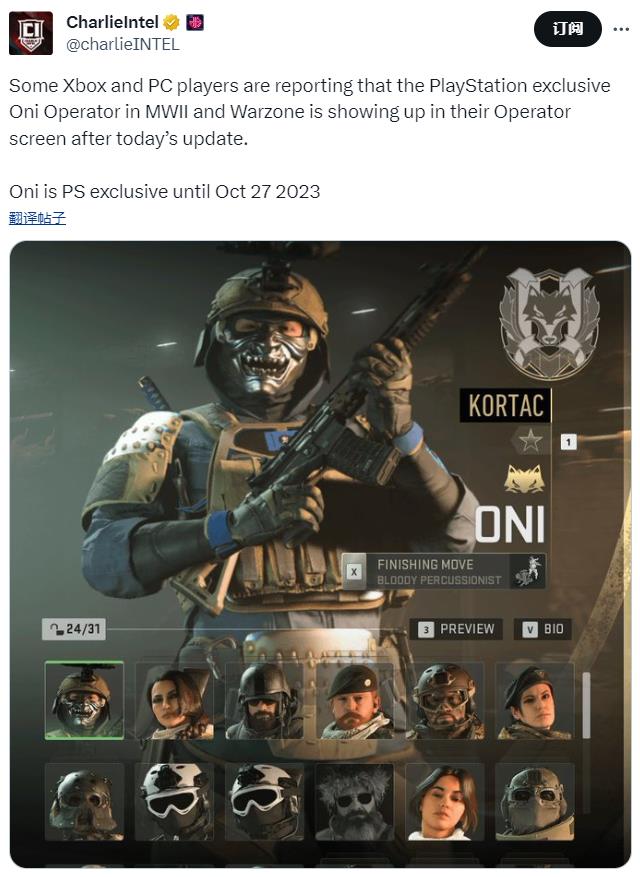 根据一些Xbox和PC玩家报告称,在最近的更新之后,《使命召唤:现代战争2》中的战鬼干员皮肤已经出现在了游戏中,该皮肤此前是PlayStation的独占奖励,并且根据协议,该皮肤至少在2023年10月27日之前是PlayStation独占内容。不过现在看起来,它似乎提前结束了独占。