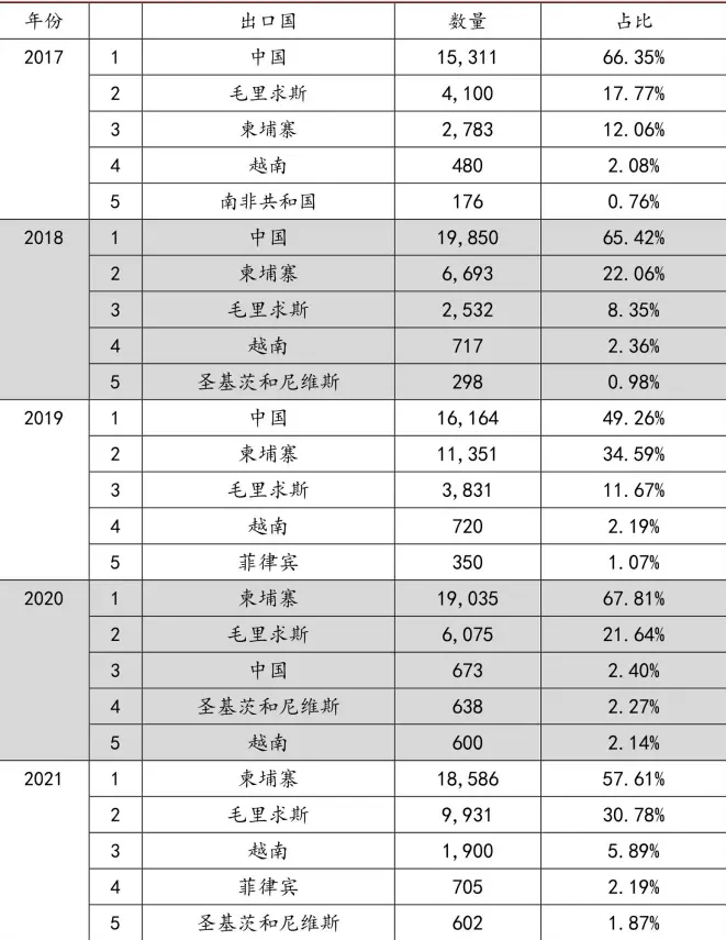 图:2017-2021年美国试验猴进口一览,来源:中邮证券