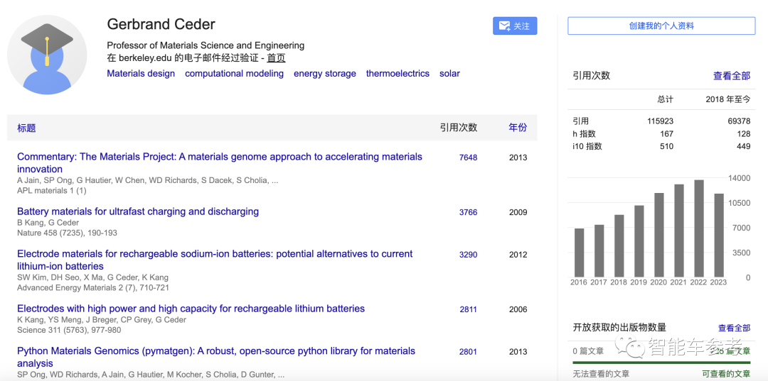 Gerbrand Ceder已经在Nature、Science等顶级期刊上发表论文超过500篇,被引次数超过11.5万次。