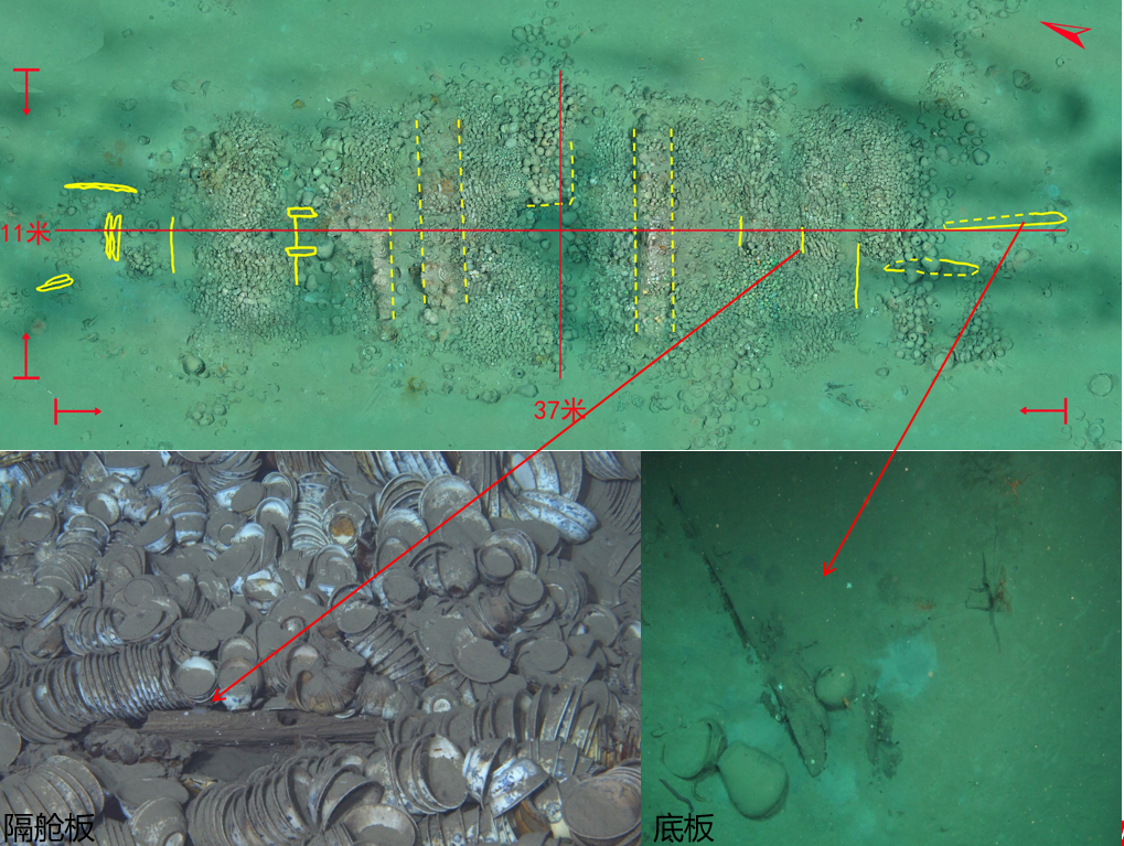核心区为船体和大量堆叠有序、码放整齐的陶瓷器、铁器等构成的堆积,长约37米,宽约11米。