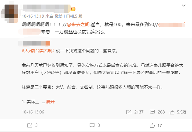 针对此事,王高飞回复网友留言时表示,网传消息有误,实名针对的是100万粉丝的自媒体账号,未来最多降到50万粉丝。