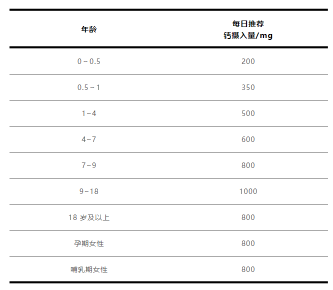 根据《中国居民膳食营养素参考摄入量(2023)》的建议,普通成人及孕妇、乳母的每日推荐钙摄入量为 800 mg;9~18 岁青少年的每日推荐钙摄入量则是 1000 mg。