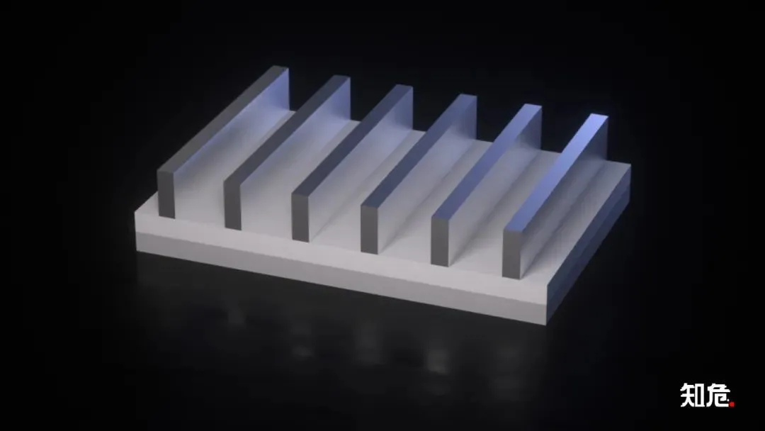 ③用蚀刻技术去除水平面上的镀膜,此时我们获得了由薄膜组成的 “ 侧壁 ”;