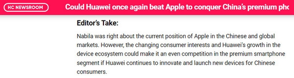 不过,如果华为继续创新,为中国消费者推出新设备,消费者兴趣的转变和华为在生态系统中的增长,可能会使华为在高端智能手机领域有实力与苹果展开公平竞争。