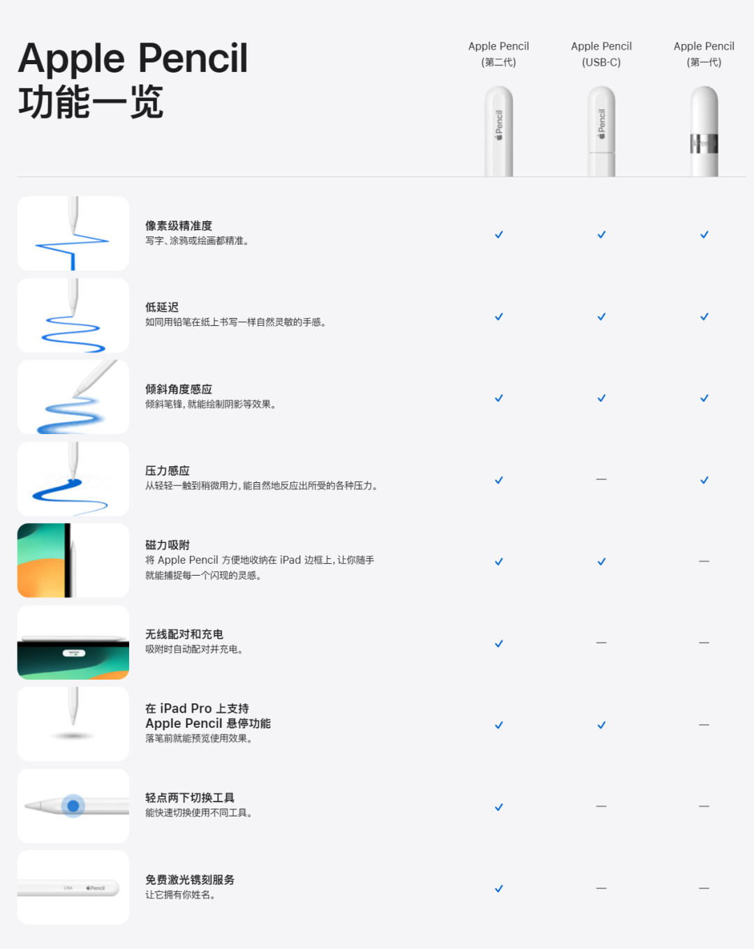 一代和二代笔上最最关键、算得上是 Apple Pencil 灵魂的压感功能,在这代笔上被砍掉了。