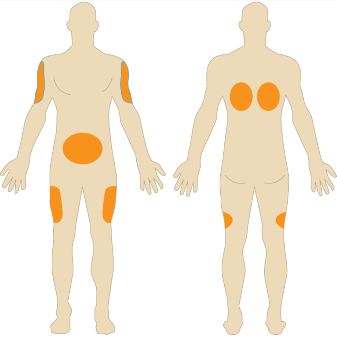 除此之外,大腿外侧(股直肌),还有胳膊上的三角肌等地方,也都是肌肉注射的“候选区”。