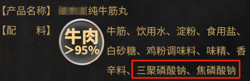比如肉丸制品中大多都有三聚磷酸钠、六偏磷酸钠、焦磷酸钠,这三种磷酸盐都属于水分保持剂,可以改善肉丸的乳化稳定性,赋予肉丸更好的口感,提高肉丸品质,避免随着冷冻时间的延长水分流失,可降低失水率。[1、2]