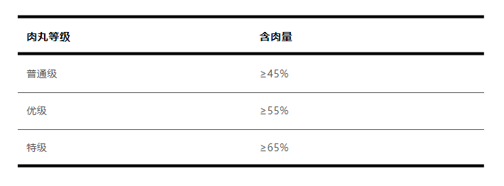 除了可能执行《速冻调制食品》标准的同时提高了纯肉含量之外,还可能会执行《SB/T 10610-2011 肉丸》的标准,该标准对肉丸的等级做了划分。