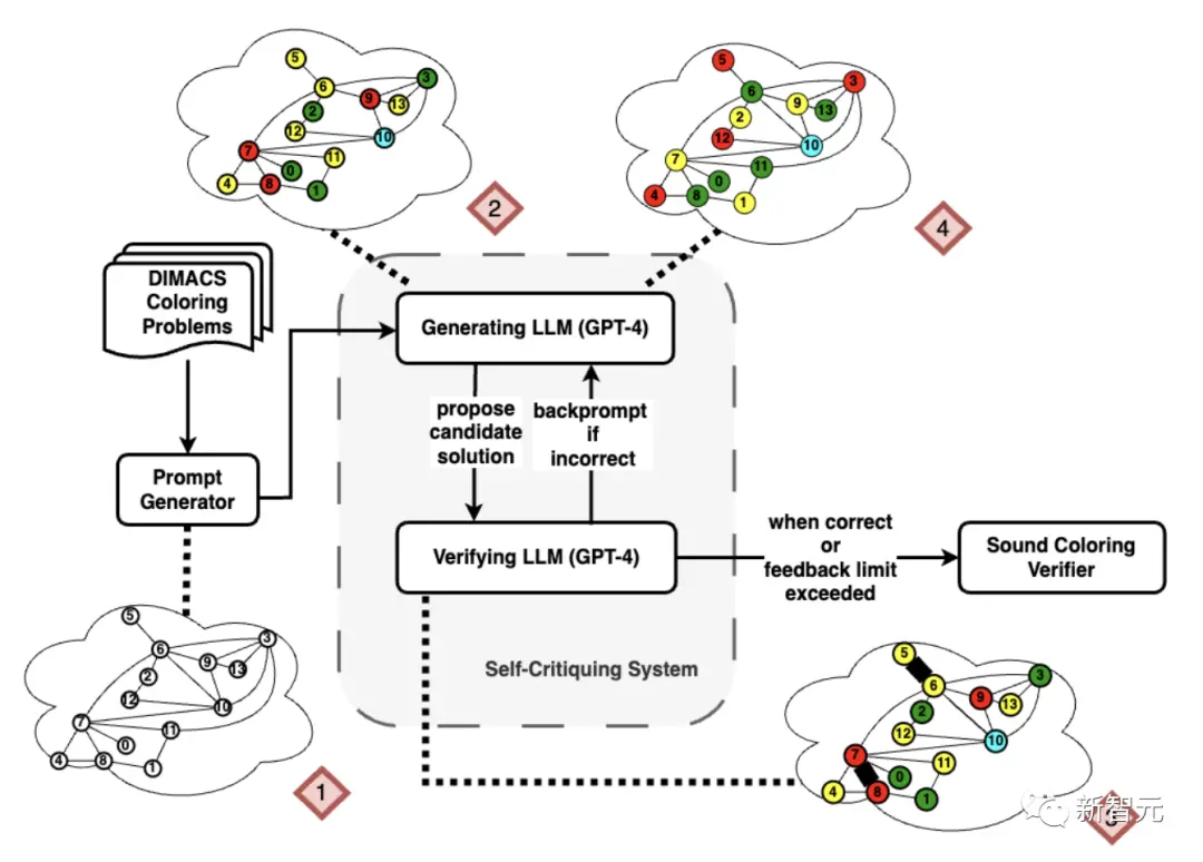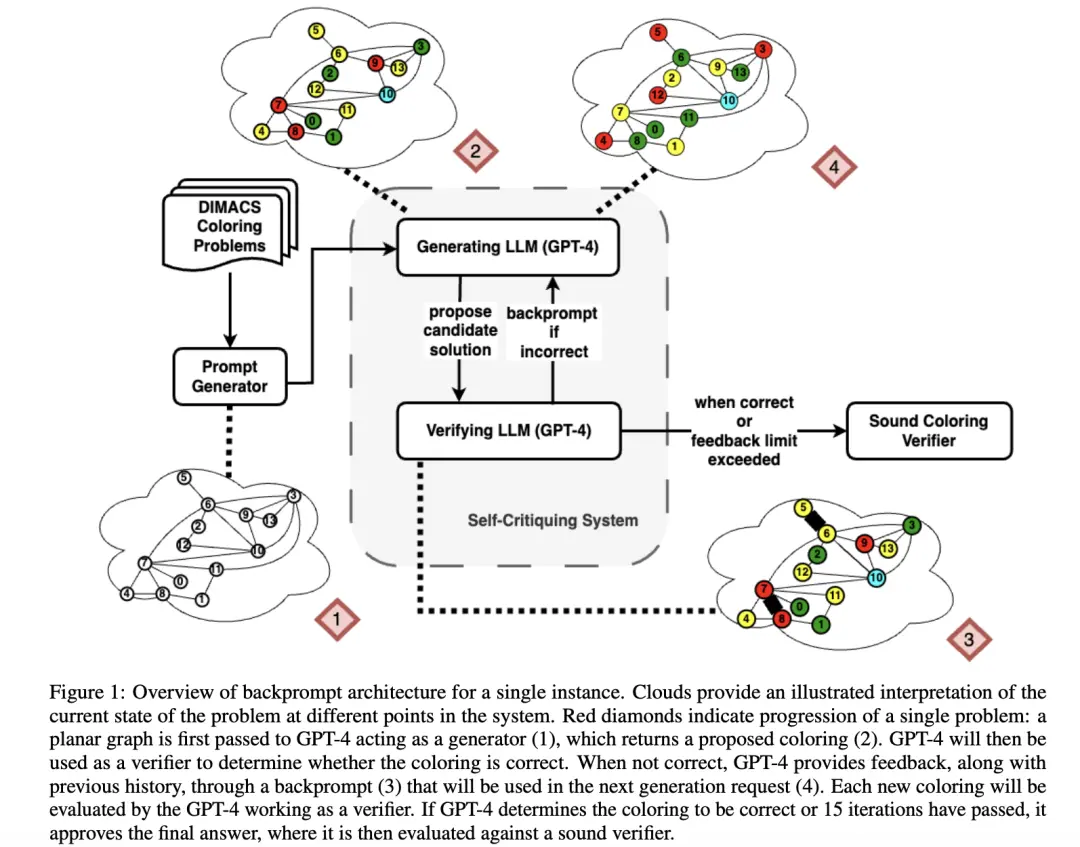 第一篇论文针对GPT-4进行研究,让GPT-4对图形着色问题提供解决方案,然后让GPT-4对于自己提出方案进行“自我纠正”。
