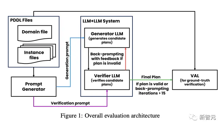 研究中,作者提出了一个包含生成器LLM和验证器LLM的规划系统。