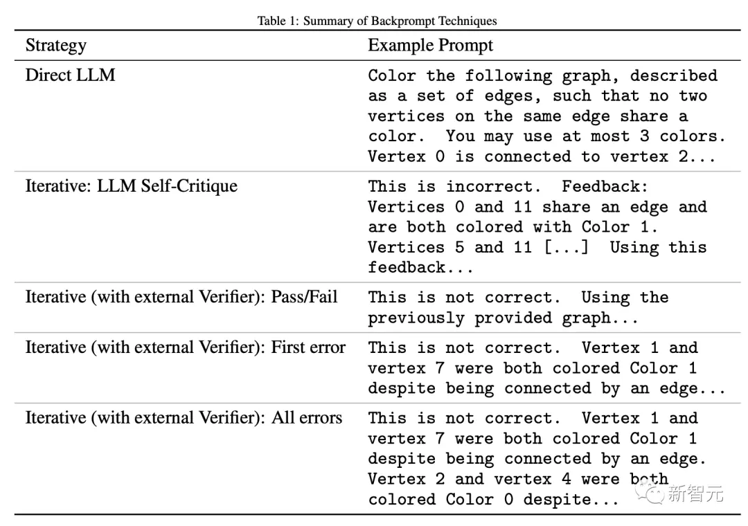 研究人员使用的图例如下图1所示,这个流程包括LLM的第一次回复、该回复的返回提示(backprompt)以及最终正确的图色方案。