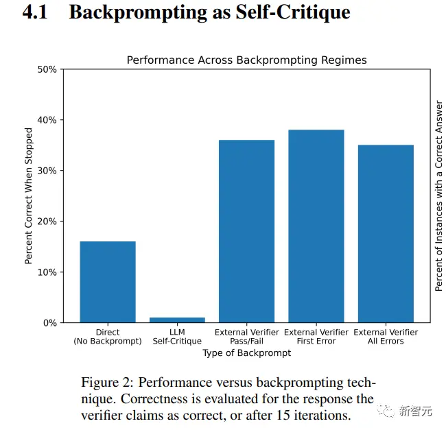 而另一篇论文,从规划任务的角度来研究了大语言模型“自我纠正”的能力,研究结果也和上一篇论文类似。