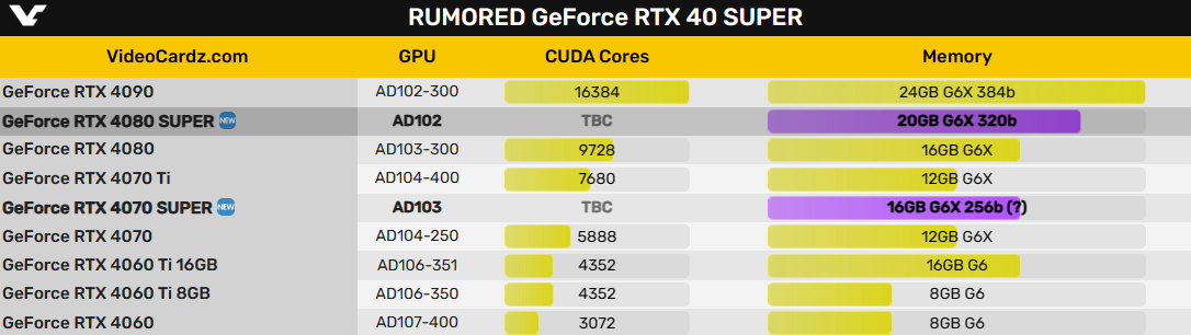接下来就看RTX 4070 Ti SUPER怎么升级了,看起来必然也会是256-bit 16GB。
