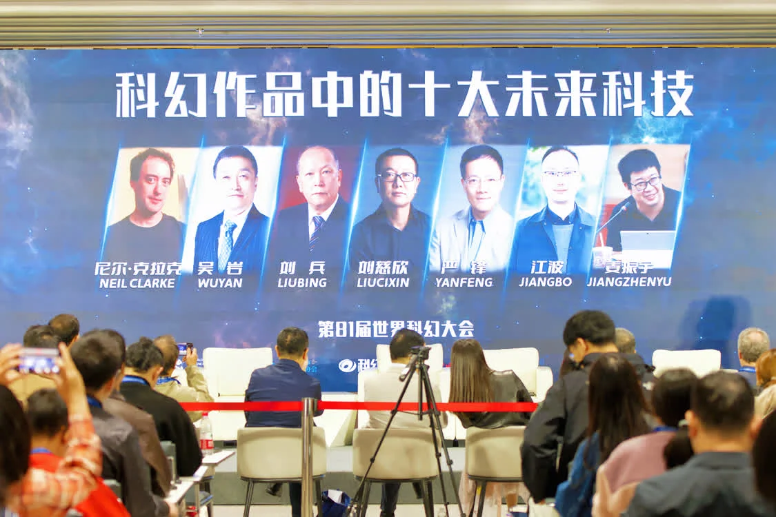 10月22日,2023成都世界科幻大会的系列活动——“科幻作品中的十大未来科技”在成都正式发布。科幻作家刘慈欣、江波,科幻学者刘兵、严锋、吴岩,加拿大科幻作家罗伯特·索耶及美国科幻编辑尼尔·克拉克等中外科幻大家在发布会现场分享了评选过程和感受。
