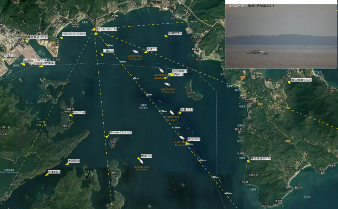 在深圳盐田,采用4.9GHz频段,利用20MHz可实现对多个船只的航迹跟踪与上报,感知距离达到20km,平均感知速度误差低于1km/h。
