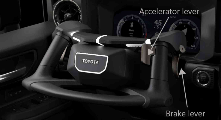 近日,丰田推出了一款全新样式的半幅式方向盘,该方向盘将在2024款普拉多上首次搭载。值得一提的是,这款方向盘的设计灵感来源于摩托车车把,油门和刹车全部被集成在了方向盘上。