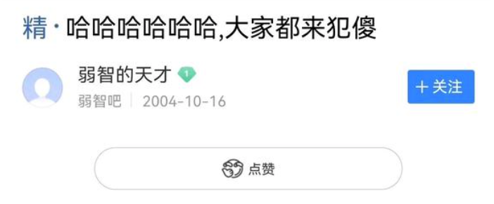 这些核心吧友在设定的基础上,经常用 “ 弱智式 ” 的风格发言,邀请大家一同犯傻。