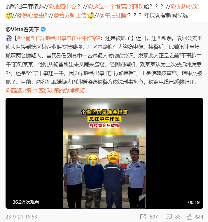 就冲这句 “ 因为早晚会出事,所以在中午作案 ” ,世超有理由相信这哥们是弱智吧资深吧友。。。