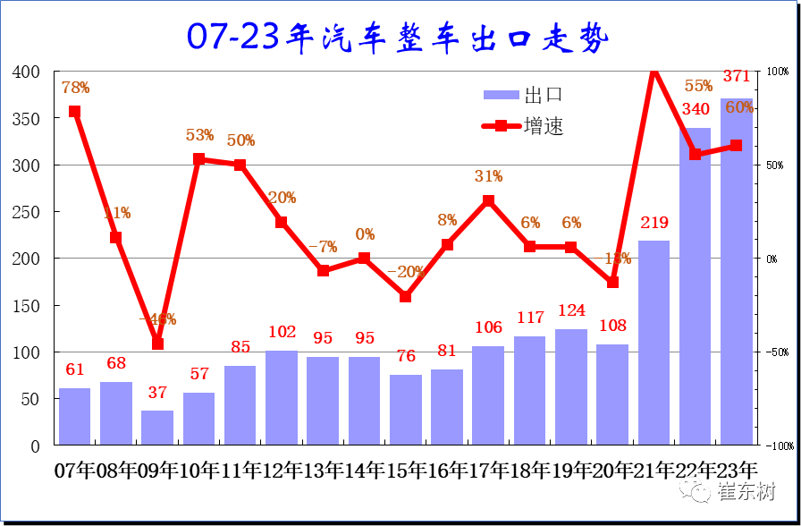 乘联会秘书长崔东树撰文称,2023年9月中国汽车实现出口50万台,出口增速36%的持续强增长。2023年1-9月中国汽车实现出口371万台,出口增速60%的持续强增长,已经超过2022年全年的340万台。