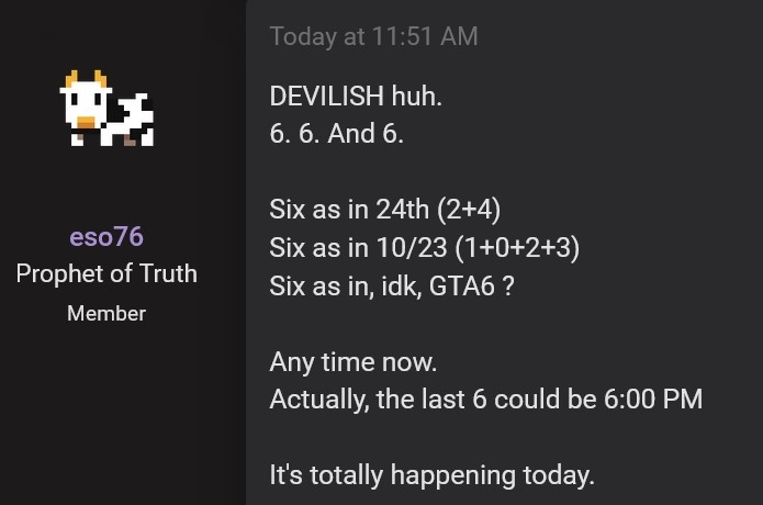 围绕着《GTA 6》有许多无厘头推论在恣意传播。有人言之凿凿地声称Rockstar将于本日(大洋彼岸为24号)宣布游戏发售日,他硬是从一张不相干的官方宣传图看出了端倪: