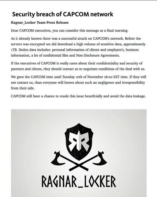 日前,欧盟执法合作署/欧洲刑警组织宣布,以对一个名为 Ragnar Locker 的勒索软件组织进行了“重大打击”。这便是此前于2020 年对卡普空发起攻击,影响了约 40 万人的数据,并索要1100 万美元的黑客组织。