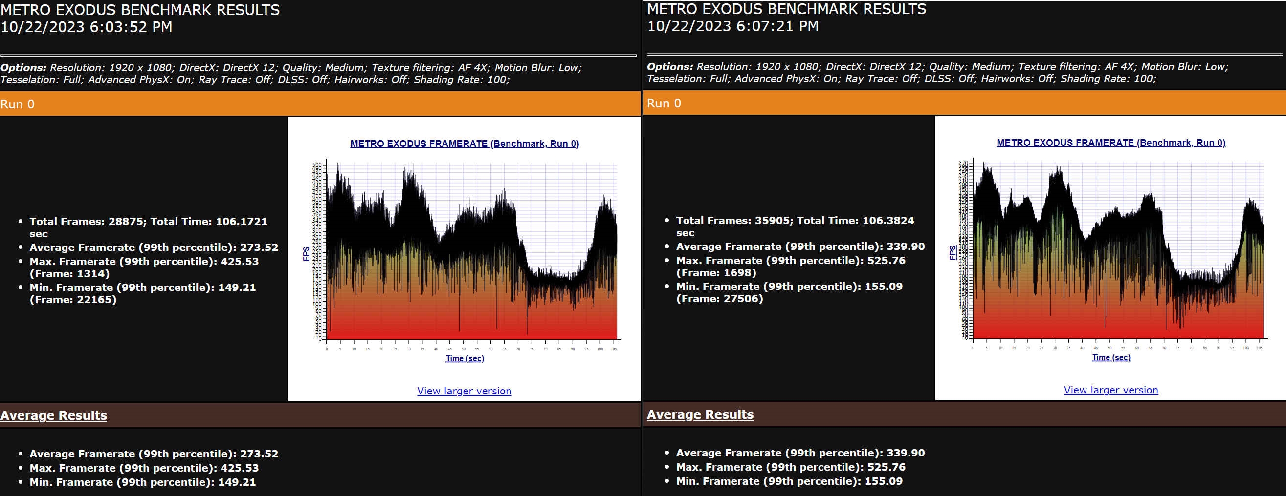 《地铁:离去》的帧率从273FPS提高到339FPS,幅度达24%。